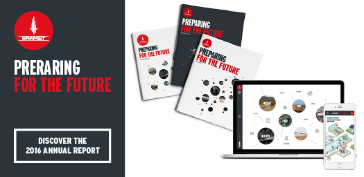 The 2016 annual report can be downloaded in PDF format in English or French in the News & Media > Publications section of eramet.com. A digital version, available at http://annual-report.eramet.com was also designed for an interactive experience through the use of infographics and animations. Finally, a short video was produced to showcase the new edition (see opposite).